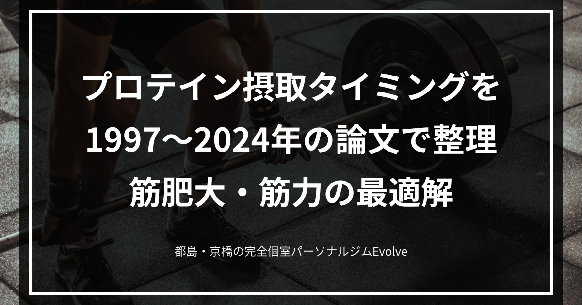 しかし、ここで重要なのは、雰囲気や定説ではなくデータです。つまり、摂取タイミングによって筋タンパク合成や筋肉量、筋力の伸び率に差が出るのか。さらに、近年の大規模な解析では何が推奨されているのか。